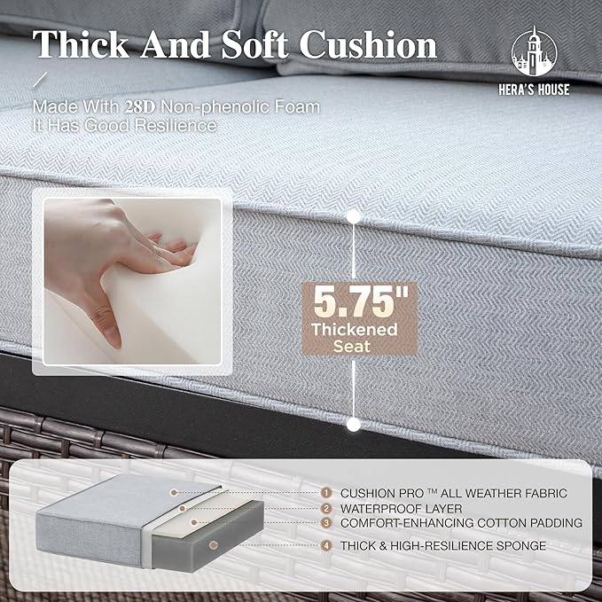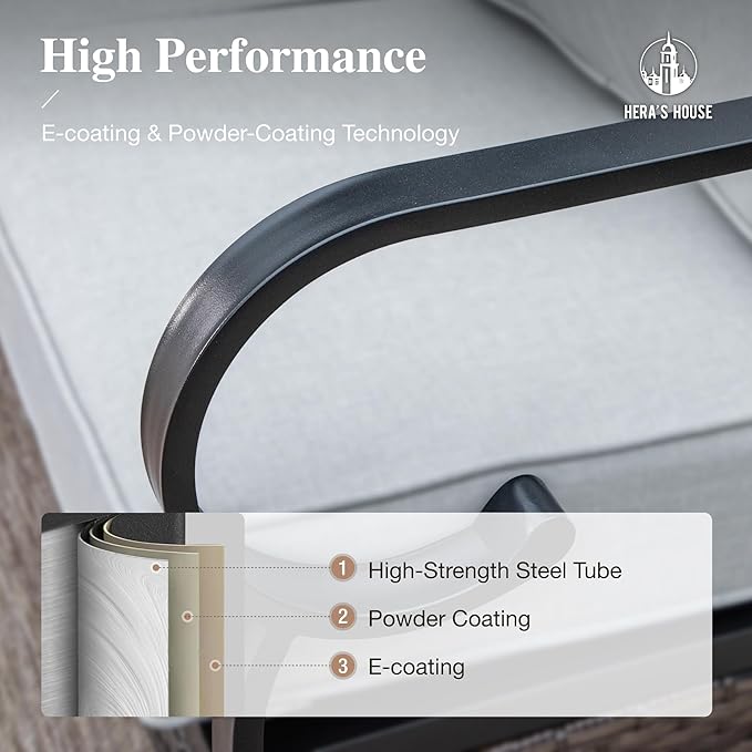 - 【E-COATING & POWDER-COATING TECHNIQUE】ALL the HERA'S HOUSE metal frame of conversation sets are processed by high-performance E-COATING and POWDER-COATING technique which provides extended protection against rust, scratches, rain, and UV harm. All weather resistant, anti-rust, easy to clean, no special care needed.