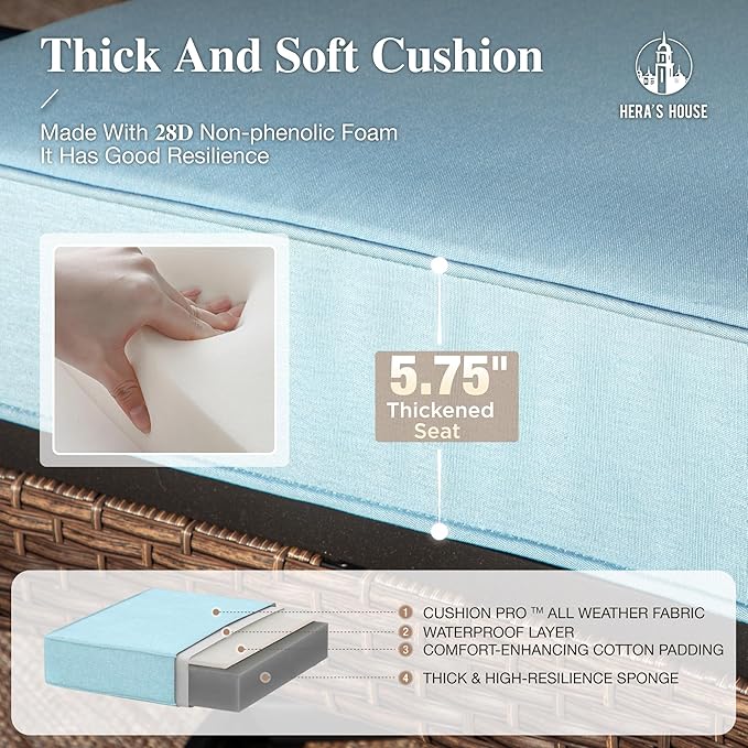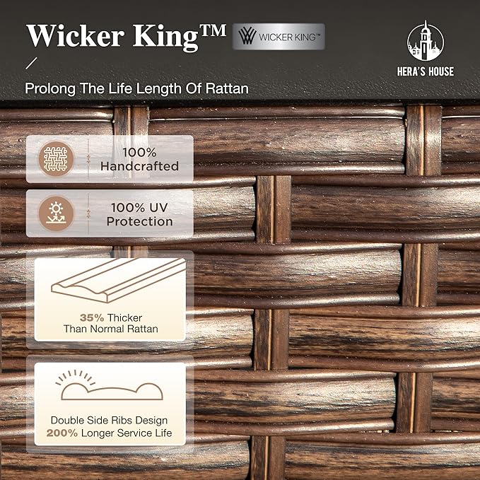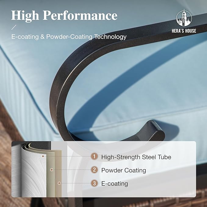 - 【E-COATING & POWDER-COATING TECHNIQUE】ALL the HERA'S HOUSE metal frame of conversation sets are processed by high-performance E-COATING and POWDER-COATING technique which provides extended protection against rust, scratches, rain, and UV harm. All weather resistant, anti-rust, easy to clean, no special care needed.