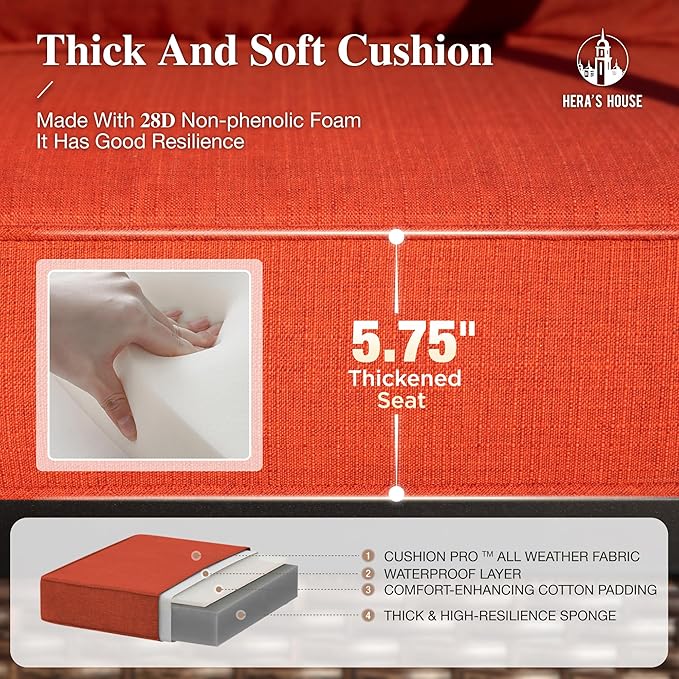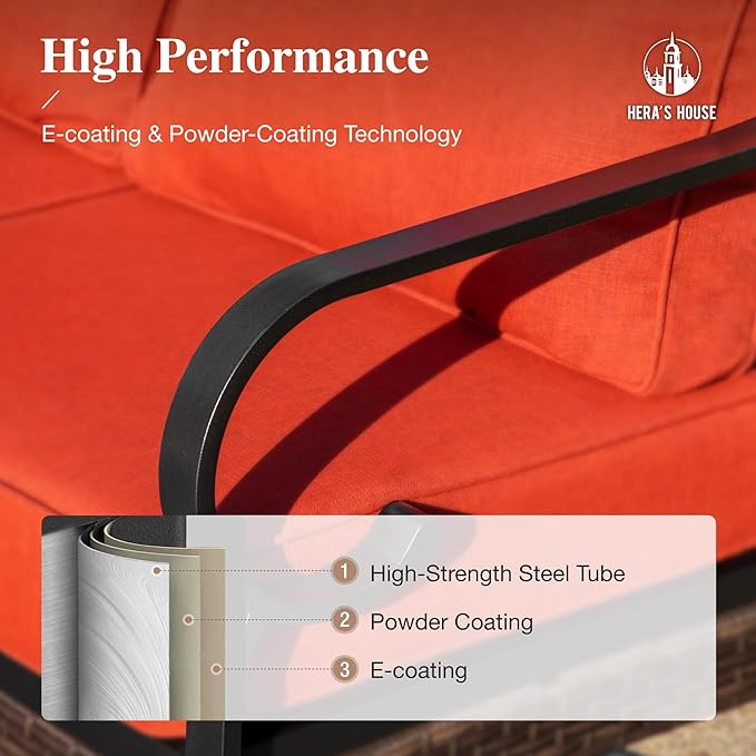 - 【E-COATING & POWDER-COATING TECHNIQUE】ALL the HERA'S HOUSE metal frame of conversation sets are processed by high-performance E-COATING and POWDER-COATING technique which provides extended protection against rust, scratches, rain, and UV harm. All weather resistant, anti-rust, easy to clean, no special care needed