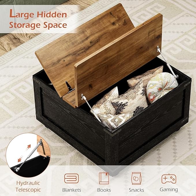 - Large Storage Function : This farmhouse coffee table with storage keeps your living room tidy and spacious. The lift-up tabletop reveals a hidden compartment for blankets, pillows, toys, and more. Overall dimensions: 31.5'' x 31.5'' x 18.9'', this maverickfurni coffee tables for living room perfect for any space, from small apartments to large homes