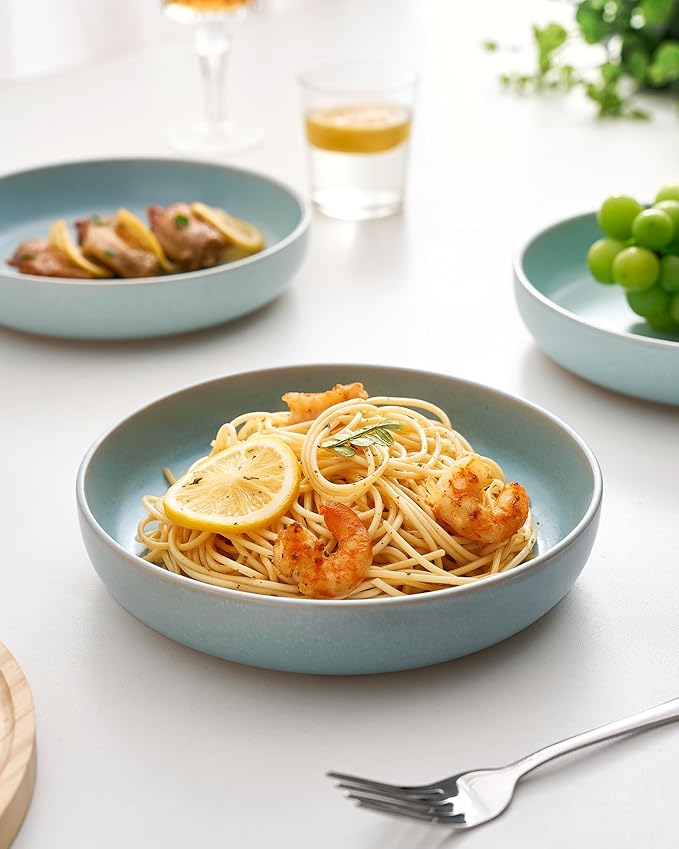 - HANDCRAFTED - Featuring a simple, stylish design, these pasta plates are handcrafted and glazed with a double-reactive glaze for a unique, dreamy color. Shades may vary on the glaze, showcasing the one-of-a-kind beauty of our handcraft