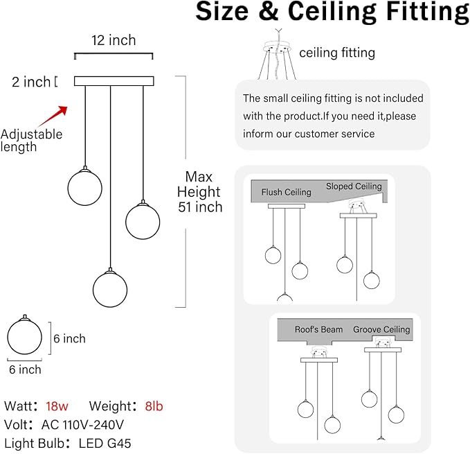 - 【Modern LED Pendant Lighting Installation】Please carefully read the size drawing and choose the suitable size for your home. The installation is simple. After installing the top panel on the ceiling, install the glass. Please let us know if you have any questions