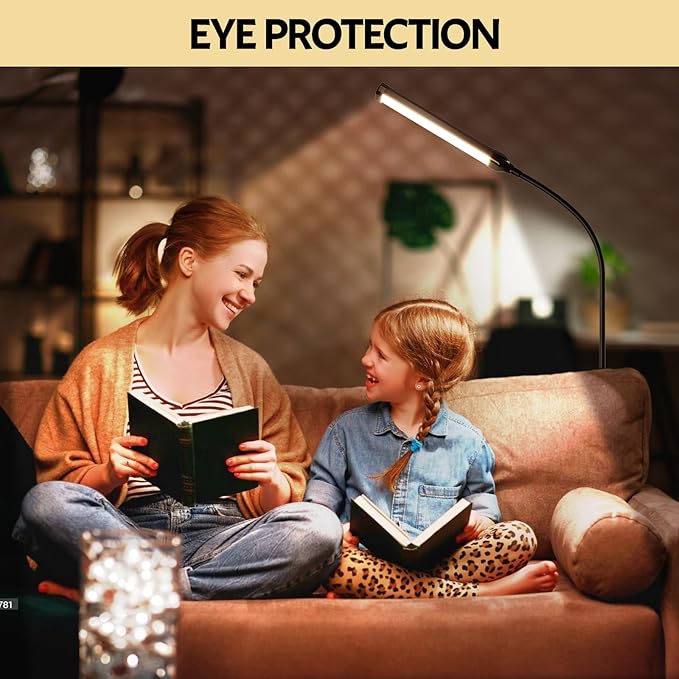 LED Floor Lamp, Reading Lamps Adjustable Stepless Colors & Brightness Gooseneck Standing Lamp, Nail Tech Lamp, Lash Light for Eyelash