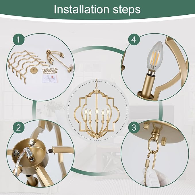 - E12 Bulb Compatibility: This 5-light chandelier requires E12 base bulbs (max 60W each) and works with LED, Edison, incandescent, or CFL bulbs. Fully dimmable when paired with a dimmable bulb and dimmer switch (not included), it lets you set the perfect ambiance for any occasion.