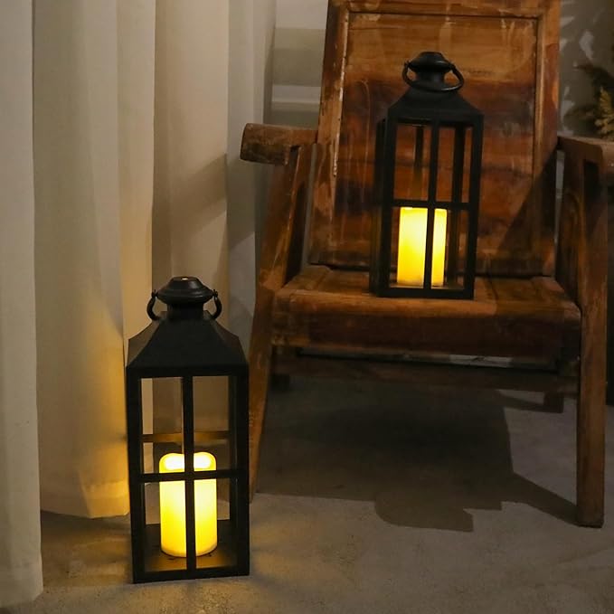 - Elegant Design: Featuring a classic black metal frame and a realistic LED candle, this 17.7-inch lantern adds a touch of sophistication to any space. Perfect for home décor, weddings, and holiday celebrations.