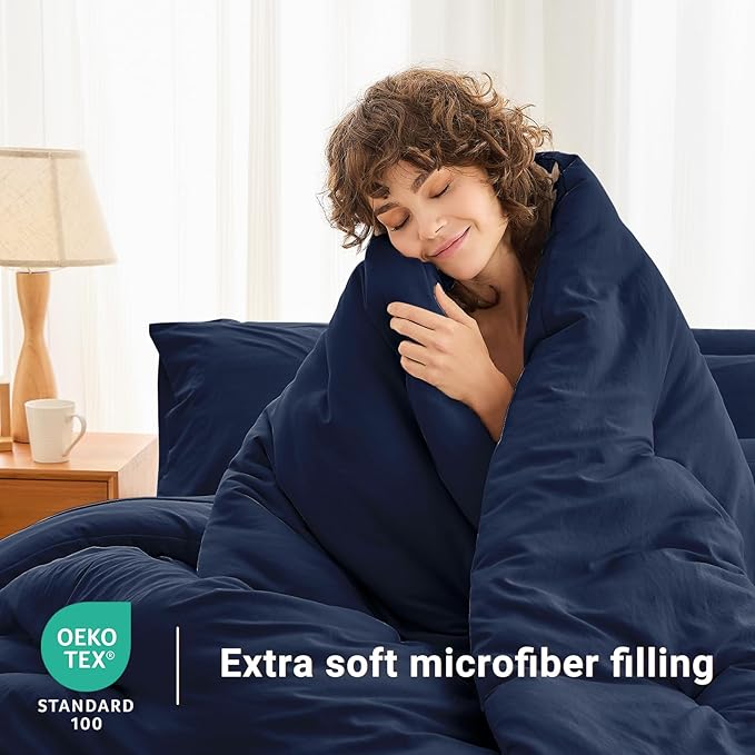 - Cloud-Like Filling: Filled with lightweight down alternative filling, this navy blue comforter provides a soft and fluffy feel that mimics the warmth of natural down without the added weight, making it ideal for year-round use