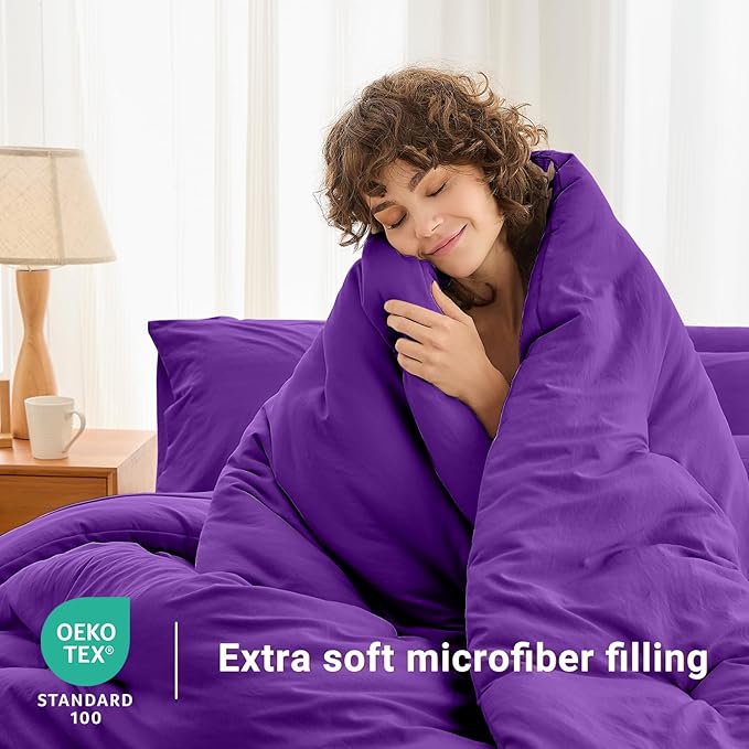 - Cloud-Like Filling: Filled with lightweight down alternative filling, this purple comforter provides a soft and fluffy feel that mimics the warmth of natural down without the added weight, making it ideal for year-round use