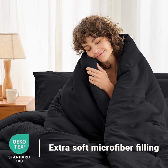- Cloud-Like Filling: Filled with lightweight down alternative filling, this black comforter provides a soft and fluffy feel that mimics the warmth of natural down without the added weight, making it ideal for year-round use