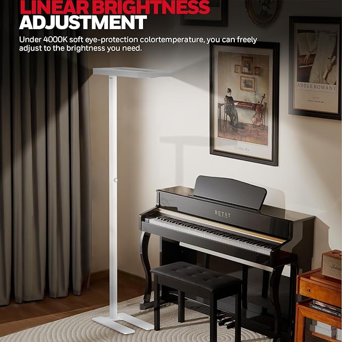 - 4000K Natural Daylight Floor Lamp: Honeywell 02E bright floor lamp features a 24" x 11.3" large rectangular panel that emits light upwards and downwards, utilizing ceiling diffuse reflection and micro-prism diffusion technology to provide illumination across an area of up to 113 square feet. Its dual light source design offers 2952 lumens of flicker-free, glare-free downward direct lighting, while providing 3048 lumens of even brightness upwards, ensuring a bright and comfortable environment in various settings like studies, offices, living rooms, piano rooms and bedrooms.