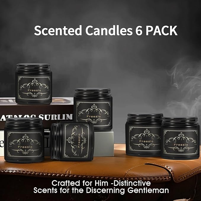 6 Pack Scented Candles for Home, Scented Candles Gifts Set for Men Women, Smoke-Free Strong Fragrance Long Lasting, Natural Soy Jar Candles Set for Boyfriend Him Dad, Men Birthday