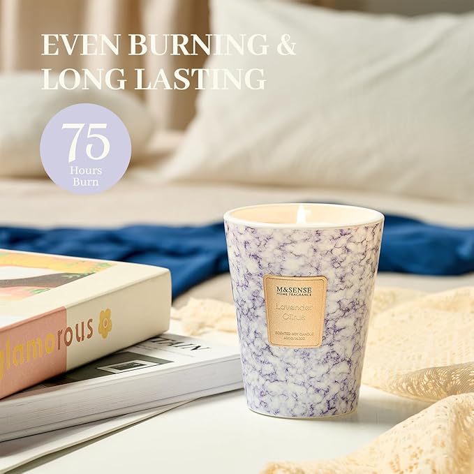 M&SENSE LavenderCitrus Scented Candles for Home, Lead-Free Wick Highly Scented Jar Candles, 14.1 Oz 80 Hours Lasting Burning Candles Gifts for Women, Relaxing Aromatherapy Candle for Stress Relief