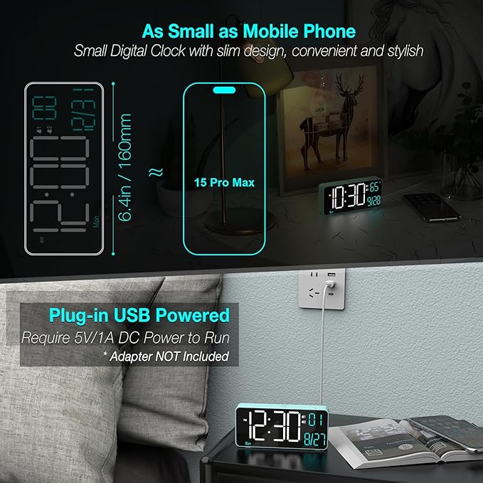 - [Need Plug-in USB-A Power Supply] This small digital clock requires a 5V/1A AC adapter (NOT included) to work. It comes with a button cell, which only used for time backup if outage, not for regular power supply.