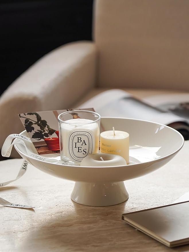 - MULTI-FUNCTIONAL - This footed bowl is large and sturdy enough to hold fruits, veggies, bread, snacks, or candy in the kitchen. It would also be suitable as a modern key bowl for an entryway table to hold keys and small items. Beyond practicality, you can use it as a decorative bowl, filling it with rattan balls, candles, dried flowers, or seasonal treasures like spring eggs or Christmas balls to add a festive touch to your living room or bedroom.