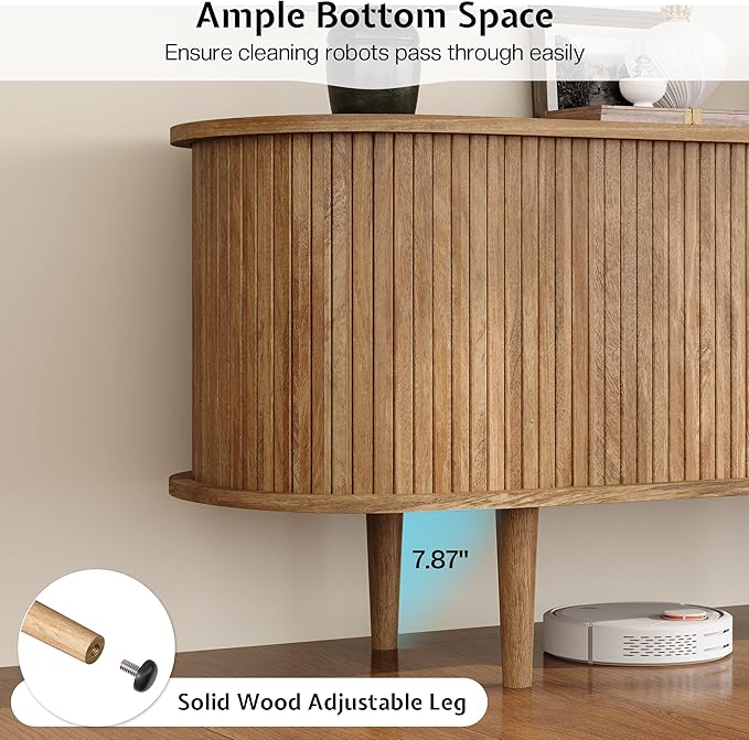- Chic Tambour Doors:The innovative tambour door design keeps your fluted TV stand dust-free, while the stylish gold metal handles add a touch of elegance. Hidden doors ensure a streamlined, modern look and enhanced functionality