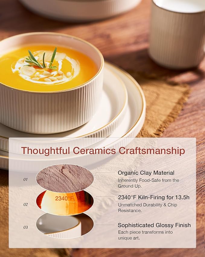 - [Premium Ceramic Durability]: Fired at 2340°F for 13.5 hours, our dishes boast impressive weight and thickness. They can resist chipping, scratching and daily wear, ensuring reliable kitchen use. Enjoy confident daily use, even with silverware