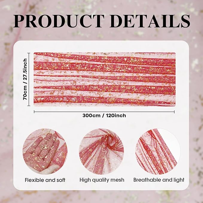 Artoid Mode 3PCS Red Gold Gauze Table Runner 120 Inch 10FT, Glitter Metallic Foil Sheer Dining Wedding Anniversary Holiday Table Decor for Home Party