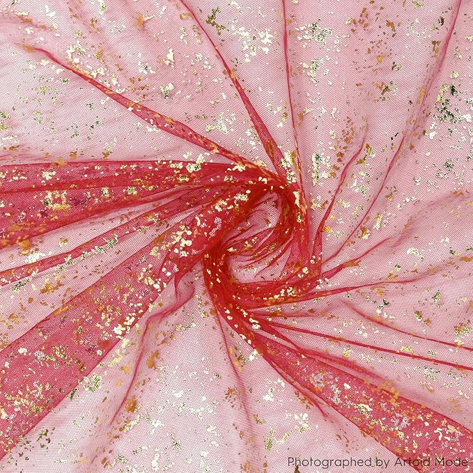 Artoid Mode 6PCS Red Gold Gauze Table Runner 120 Inch 10FT, Glitter Metallic Foil Sheer Dining Wedding Anniversary Holiday Table Decor for Home Party