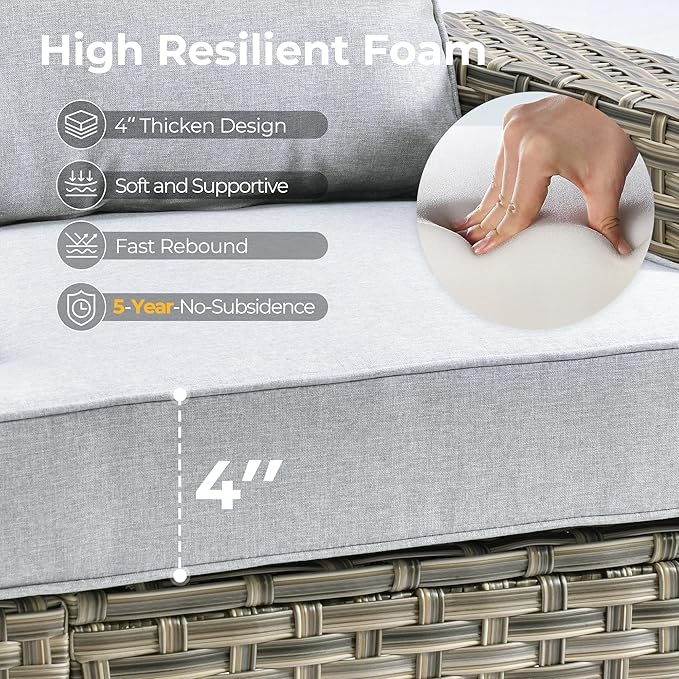 - All Weather & Durable: Selected anti-ageing treated thicken PE wicker rattan for UV resistant, wear resistant and all weatherproof. 3D strengthen and widen design for extended service life,twice service life as others