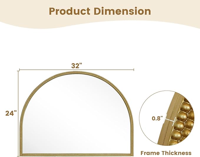 - Unique Vintage Design – Featuring an elegant arched silhouette and a double-beaded metal frame, this gold vintage mirror exudes timeless sophistication. Perfect for entryways, living rooms, bedrooms, or hallways, it seamlessly complements both modern and vintage décor.
