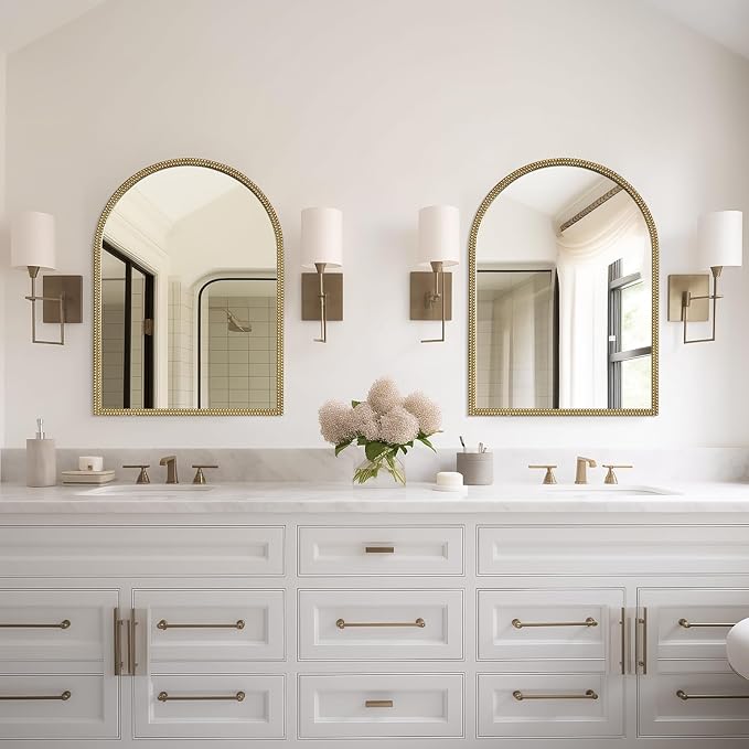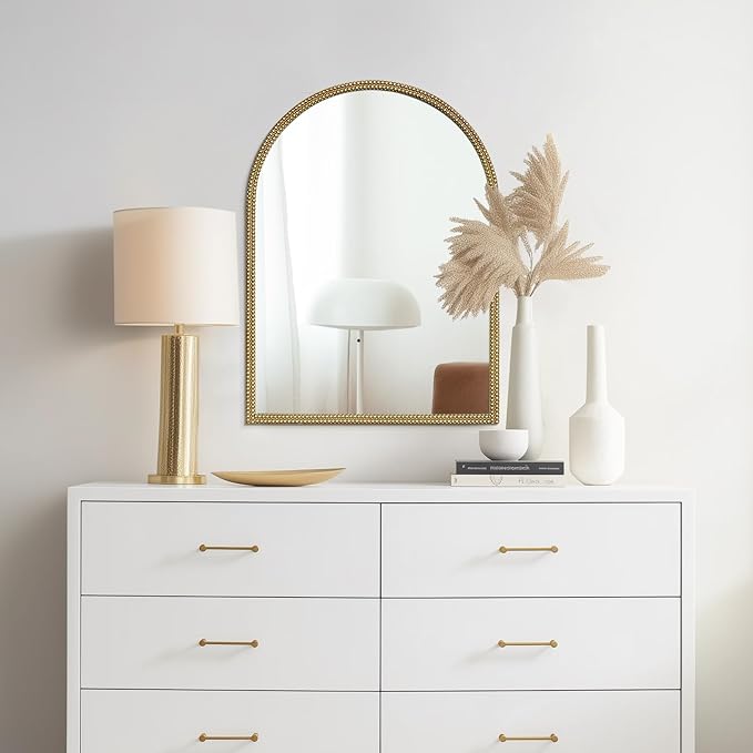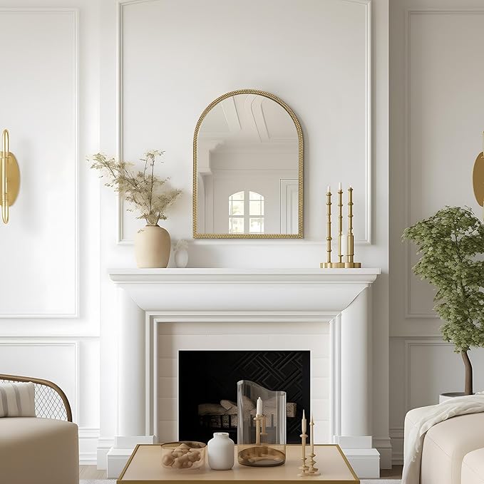 - Unique Vintage Design – Featuring an elegant arched silhouette and a double-beaded metal frame, this gold vintage mirror exudes timeless sophistication. Perfect for entryways, living rooms, bedrooms, or hallways, it seamlessly complements both modern and vintage décor.