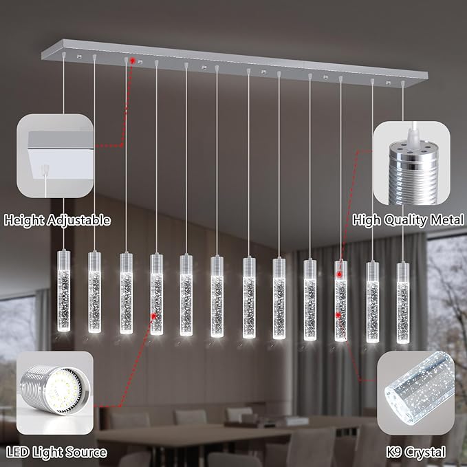 - 【K9 bubble crystal pendants】High quality aluminum lampshade with chrome finished round base. Provide bright lighting and modern design looking for your kitchen, island, dining room, bedroom, hallway, bar, over dining table
