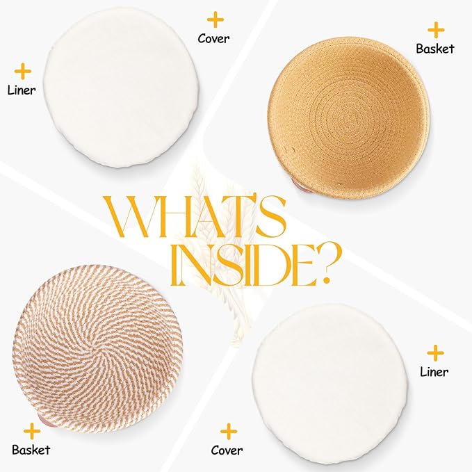 - Breathable Design for Optimal Fermentation – Handmade with high-quality cotton rope, these bread proofing baskets allow excellent airflow to maintain the ideal moisture balance and promote perfect dough fermentation. No sawdust, easy to clean and maintain