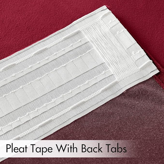 - HANGING OPTIONS: Each curtain panel has 3-in-1 top style design: rod pocket, back tab and pinch pleat. Back loop (2.3 inch) and rod pocket (3.1 inch) fit most standard rod. Curtains also can be hung with clip rings or curtain hooks. 3 ways to meet your various needs.