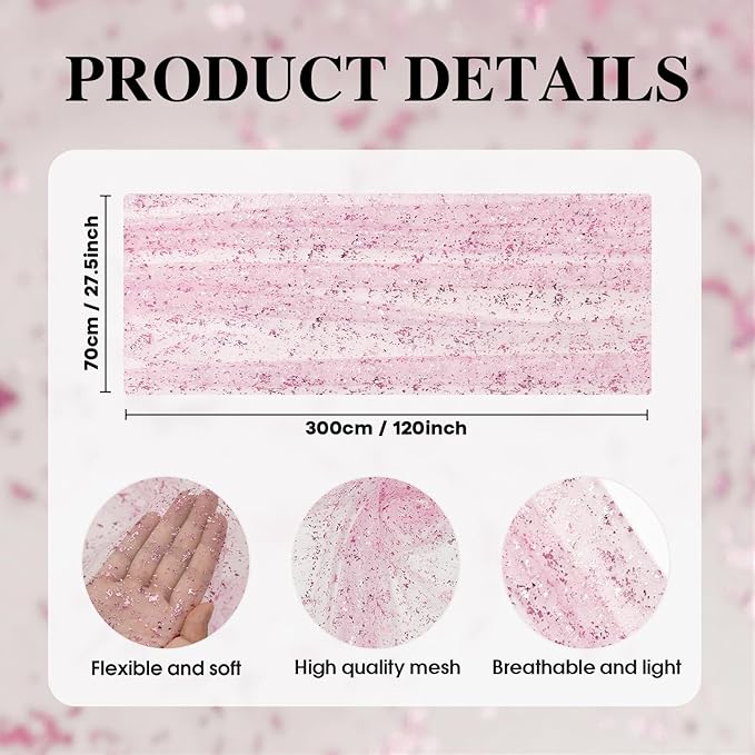 Artoid Mode 6PCS Pink Gold Gauze Table Runner 120 Inch 10FT, Glitter Metallic Foil Sheer Dining Wedding Anniversary Holiday Table Decor for Home Party
