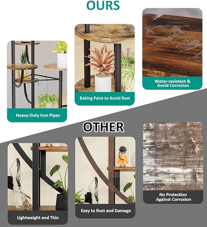 - 【Ultra-stable & durable build】The Amzeth heavy duty metal rotating plant stand built to last with heavy-duty 1.2mm thick steel pipes with a rust-resistant, baked-on paint finish for long-lasting use. The thickened particleboard shelves feature a water-resistant coating to prevent warping, curling, and moisture damage—delivering excellent stability and durability.
