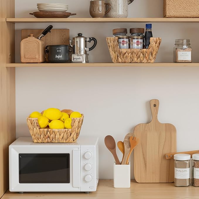StorageWorks Small Pantry Baskets for Patato and Onion Storage, Wicker Baskets for Organizing with Built-in Handles, Water Hyacinth Pantry Organizers and Storage for Kitchen Shelves, 2 Pack
