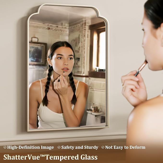 - Elevate Any Room with Timeless Style – Designed with a graceful scalloped arch, this wall mirror transforms your bathroom, bedroom, living room, or entry into a brighter, more inviting space. Whether above the sink or beside a dresser, it instantly adds charm and sophistication to your home
