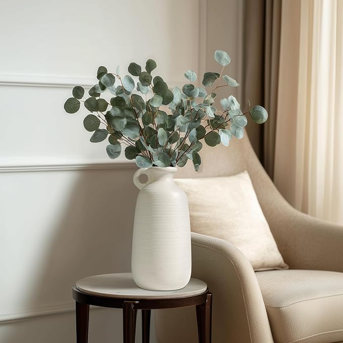 - Farmhouse Home Décor: Stylish and visually appealing, this white ceramic vase is perfect for decorating your living room, bedroom, bathroom, bookshelf, mantel, coffee table, entryway, cabinet, and more