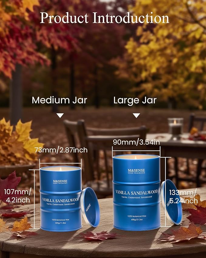 M&SENSE Vanilla Sandalwood Scented Candles Large, Natural Soy Candles 21.2oz 120 Hour Slow Burning,Aromatherapy Candle for Stress Relief Meditation Relaxing