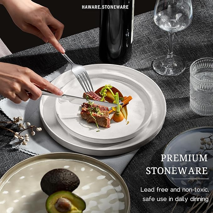 - 【HEALTHY STONEWARE】Crafted from high quality stoneware, LEAD-FREE, CADMIUM-FREE and Non-toxic, won't release any harmful substances into your food while in use, Ensure its durability and safety, Those dinnerware are undergoes firing at a high temperature, extremely sturdy and chip resistant, suitable for long term and heavy use, they are both dishwasher safe and microwave safe, making the processes of cleaning and cooking effortless