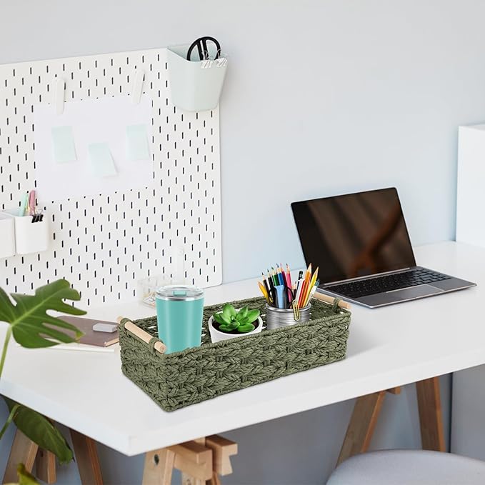 - 100% Paper Rope Material Production: OIAHOMY wicker storage basket is based on a metal frame and tightly woven with high-quality paper rope material, fully ensuring the durability of the shelf organizer; Paper rope is a 100% renewable material that protects the environment from harm