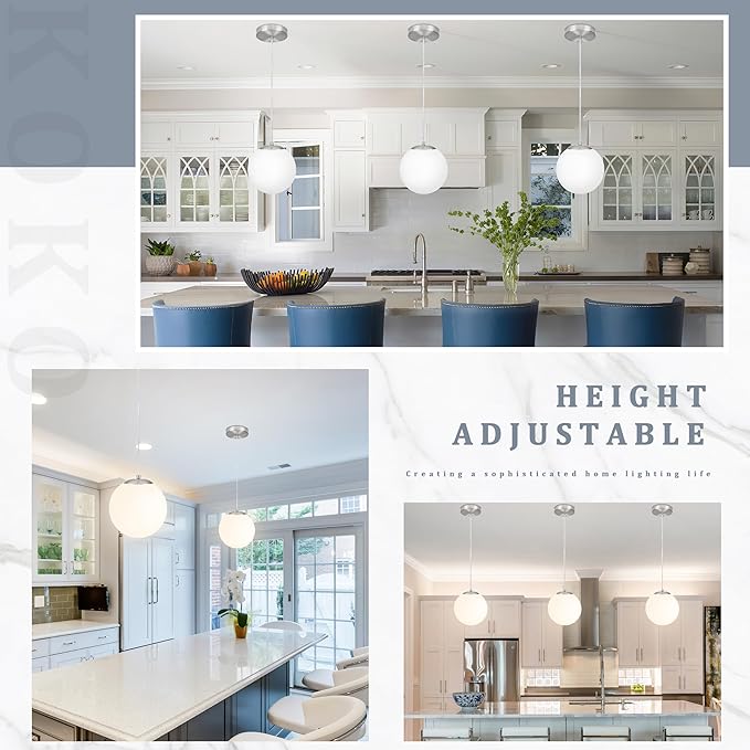 KoKo&Yukina 8 Inch Globe Pendant Light Nickel Globe Pendant Lights Kitchen Island Mid Century Light Fixture with Milky White Glass Shade Adjustable Lights for Dining Room