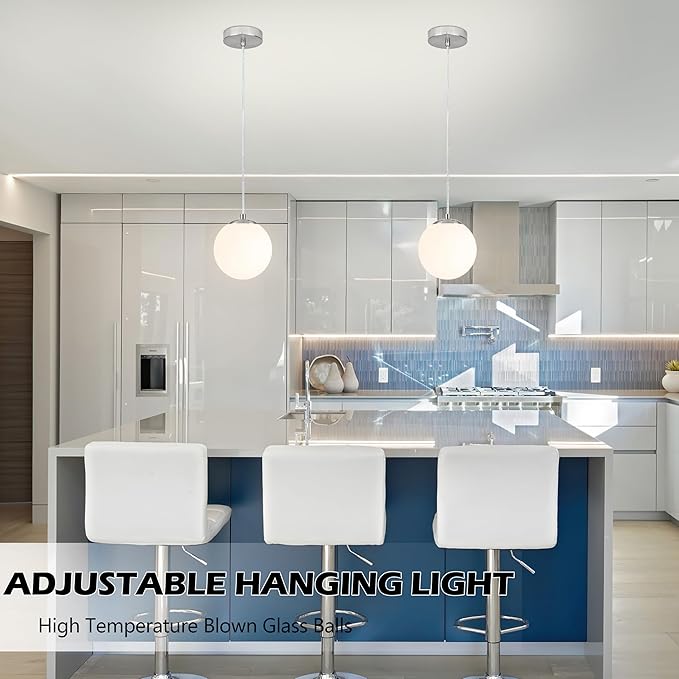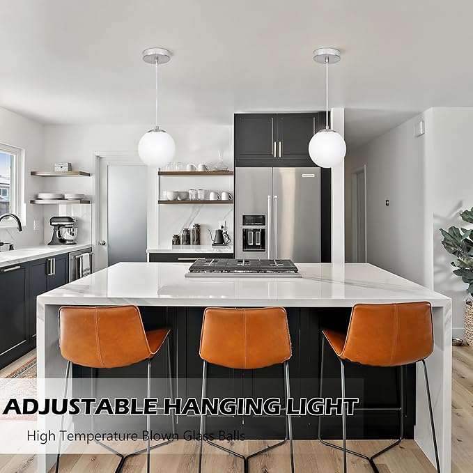 - [Dimension Design] This 2pack modern sphere chandelier features an adjustable hanging height of 59 inches, a 6-inch sphere diameter, and a 4.7-inch ceiling canopy diameter. The cord length is adjustable to easily fit various room setups.