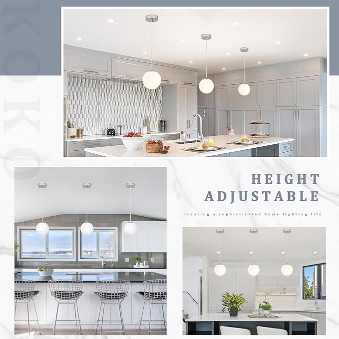 KoKo&Yukina 6 Inch Globe Pendant Light Nickel Globe Pendant Lights Kitchen Island Mid Century Light Fixture with Milky White Glass Shade for Dining Room Living Room