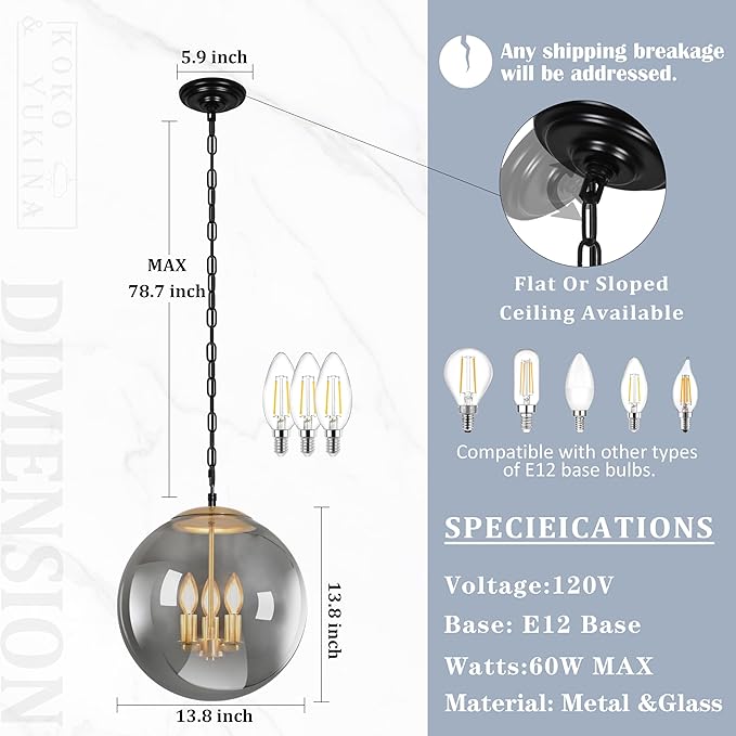 - [Dimension Design]:Boasting an adjustable hanging height of 78.7 inches, a 13.8 - inch diameter globe, and a 5.9 - inch ceiling plate. The wire length is adjustable, fitting various room setups with ease.