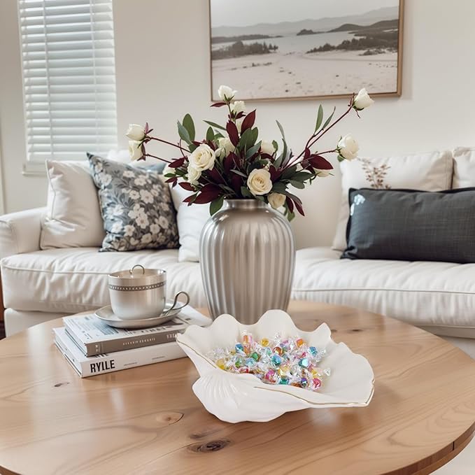 - Large and durable – Built to hold more, styled to impress: Measuring 11.02" L × 7.7" W × 3.15" H, this large decorative bowl easily accommodates keys, fruits, or florals. Made of sturdy ceramic with a glossy finish, it functions as a shell container for display that won't chip or fade easily