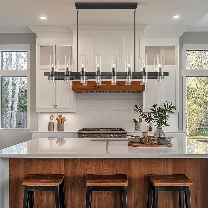 - Applicable Space: Rectangular chandelier for dining room with dimmable bulbs, delicate chandelier structure enhances the beauty of the space, glass tube lampshade creates a soft light atmosphere, rectangle chandelier is suitable for dining room, kitchen, living room, dining table, hotel, office, meeting room and so on