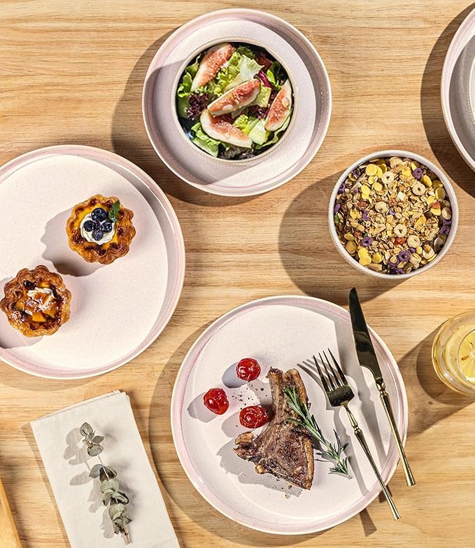 - SAFE TO USE AND DURABLE: Unlike many ceramic products, our dinnerware is made with completely lead-free and cadmium-free glazes. Each piece is fired at a high temperature of 2340℉ for 13 hours, making the set durable and heat-resistant. It is safe for use in the oven, microwave, and other kitchen appliances.