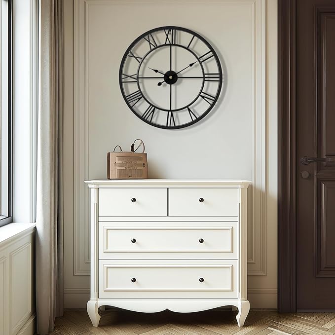 - 【Vintage Design】More than just a timekeeper, this 24'' wall clock decorative serves as a stylish wall decoration, perfect for living rooms, bedrooms, kitchens, dining areas, hallways, bars, or workplaces