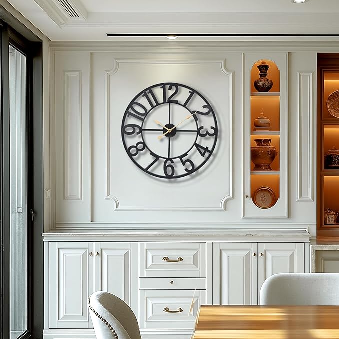 - 【Easy to Install】The back groove design makes hanging simple, a nail is included—just hang the metal large wall clock the wall with the nail for secure mounting while minimizing wall damage