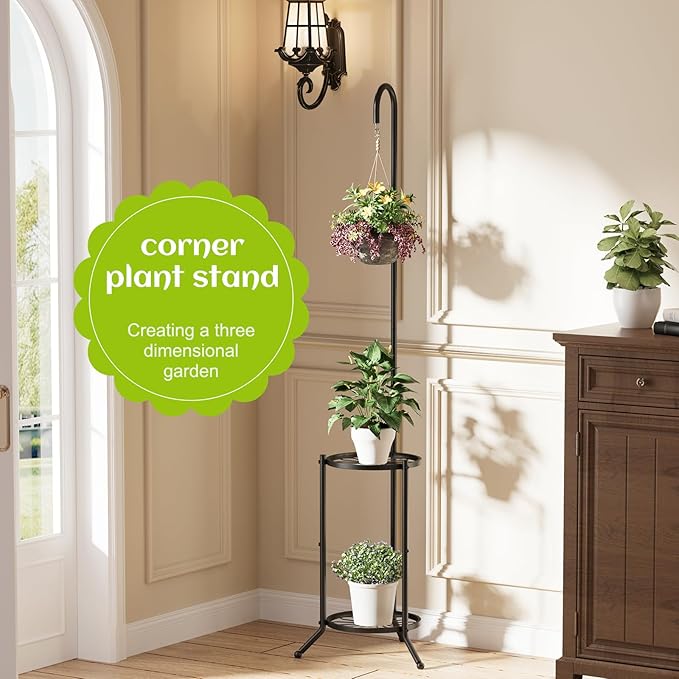 - VERSATILE DESIGN: 3-tier corner plant stand with hooks perfect for indoor and outdoor use, maximizing vertical space in corners of your patio, garden, or living areas