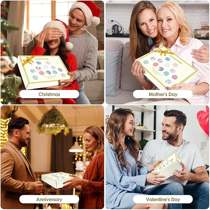 - â¤ď¸ăPERFECT GIFT SETă:The candles gift set including 12 pack cute candles and a gift box packaging. Sending these candles gifts for her to your mother as mom birthday gifts, or wife on Christmas, Thanks Giving Day, Valentine's Day, or any anniversaries
