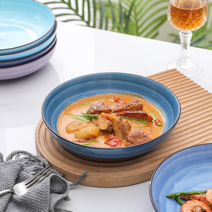 - DISHES SET FOR 6 - This 24 pieces plates set is specially designed and combined for 6 people, including 6 pieces each of 10" Dinner plates, 8" Salad plates, 24 oz Cereal bowls, 26 oz Pasta Bowls. This dinnerware set are versatile for pasta, salads, steak, cereal, soups, desserts, etc. Great for home, restaurant, and hotel use.