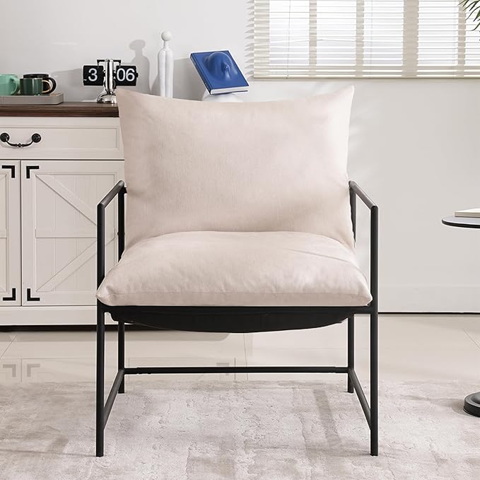 Sling Accent Chair with Metal Frame, Modern Armchair with Memory Foam Cushion, Comfy Lounge Chair for Living Room Bedroom Balcony, Beige