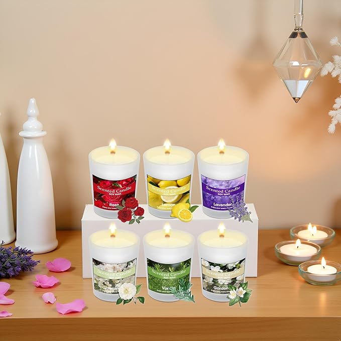 - **6 Luxury Scents**: aromatherapy candle gift set Includes vanilla, jasmine, lavender, rose, lemon and gardenia scented soy wax candles to create a soothing ambiance for any mood or occasion
