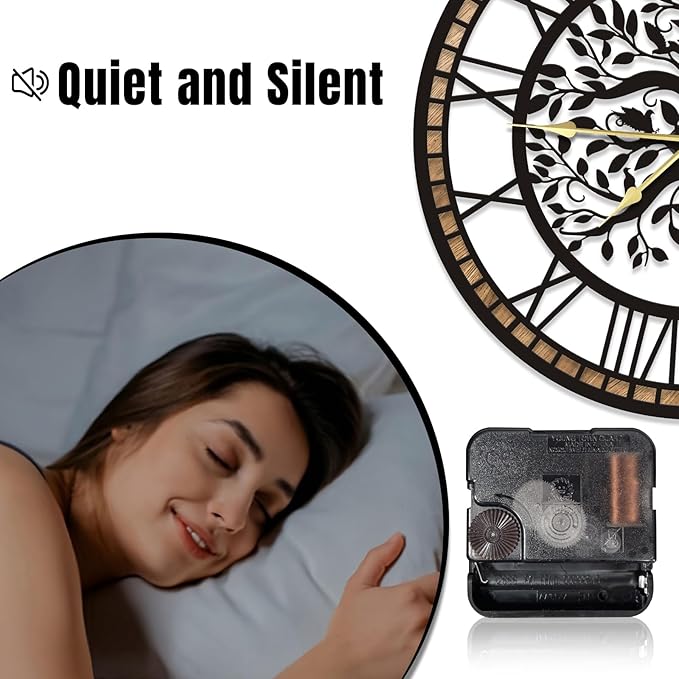 - 【Large Clock Wall Decor】:Engineered with a whisper-quiet sweep movement, this clock eliminates the disruptive ticking sounds of traditional models, creating a serene environment perfect for bedrooms, libraries, and other noise-sensitive spaces.